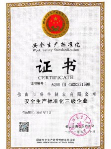 • 安全生產(chǎn)標(biāo)準(zhǔn)化三級企業(yè) 證書