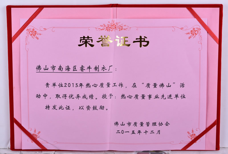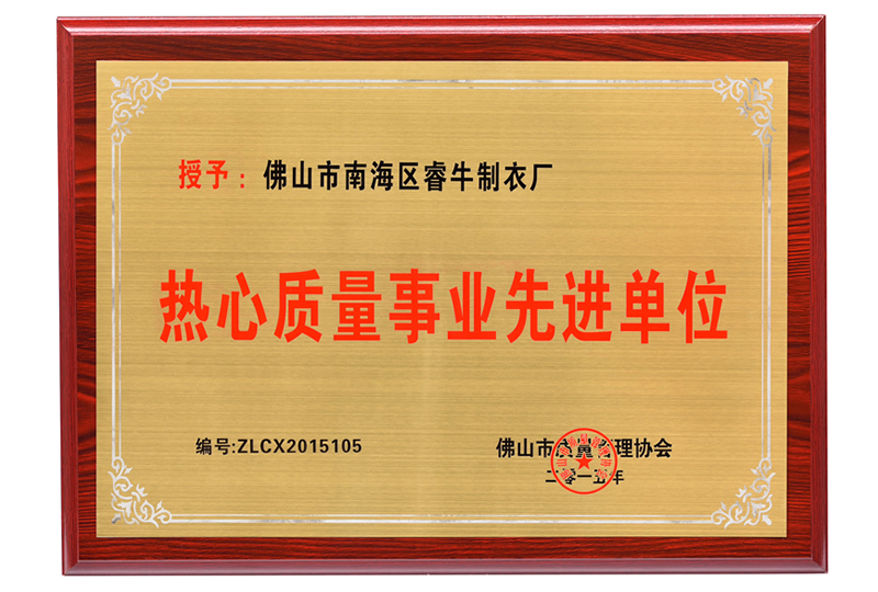 • 熱心質(zhì)量事業(yè)先進(jìn)單位