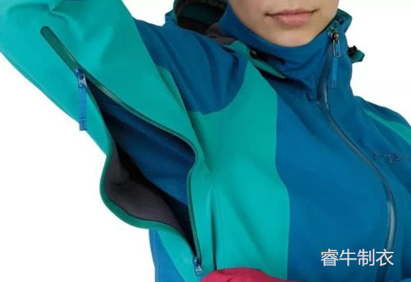 多數(shù)沖鋒衣都有設(shè)計(jì)在腋下散熱拉鏈的,它的作用是讓使用者在戶外活動(dòng)中,根據(jù)實(shí)際使用情況調(diào)節(jié)服裝內(nèi)的溫度。對于專業(yè)沖鋒衣來說,拉鏈一般都采用防水功能的產(chǎn)品。而滑雪服因?yàn)槠溥\(yùn)動(dòng)的特點(diǎn),一般是把拉鏈設(shè)計(jì)在胸口附近或者上肢的前方。和沖鋒衣的相同的是?;┓母邫n產(chǎn)品也使用防水拉鏈。