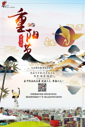今天同時呢也是重陽節(jié),思諾華祝大家重陽節(jié)快樂,健康久久,幸福久久!希望大家記住可以我們:國際品牌羽絨服生產廠家 團隊企業(yè)沖鋒衣定制專家,您有沖鋒衣定制定做這方面或者是羽絨服的需求歡迎隨時來訪思諾華工廠!