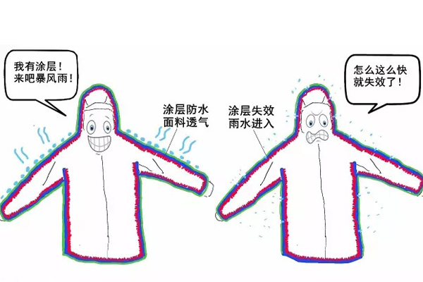 親水涂層《TU和TPU)上面這種方法主要用于PU防水涂層,PU防水涂層指的是在衣服表面織物里面附著一層防水涂層(PU聚氨酯),根據(jù)需要涂層厚度不等。親水涂層是在織物表面涂上一層親水涂層,由于涂層覆蓋了織物的所有空隙,因而可以防水。如果高分子鏈上有親水基因,含量和排列合適,則它們可以與水分子作用,借助氫鍵和其他分子間力,在高濕度一側(cè)吸附水分子,通過高分子鏈上親水基團傳遞到低濕度一側(cè)解吸。主要特點是防水效果比較好,加工方法簡單,但是透濕、透氣性能較差。