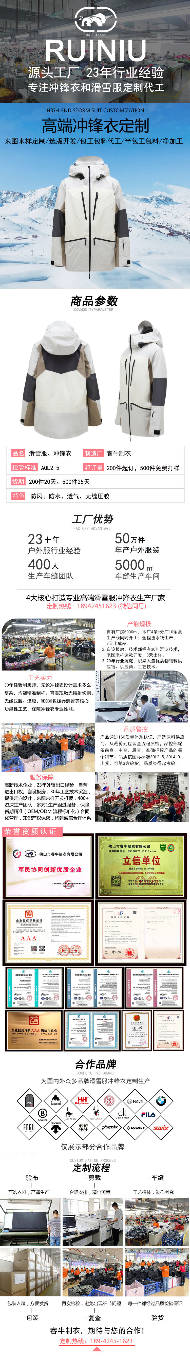 持續(xù)23年專注沖鋒衣、滑雪服定制加工廠家
