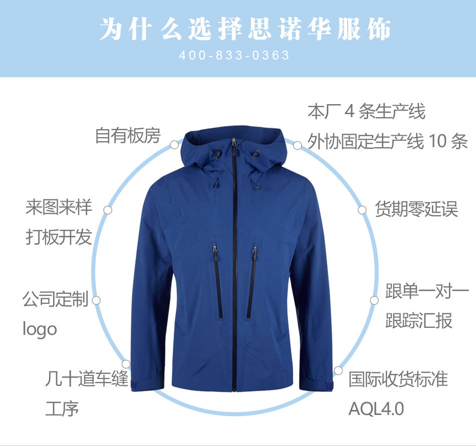 防水拉鏈:防水滑雪服定制高質(zhì)量YKK防水拉鏈,可承受數(shù)萬(wàn)次拉合,可根據(jù)客戶(hù)要求特殊定制。